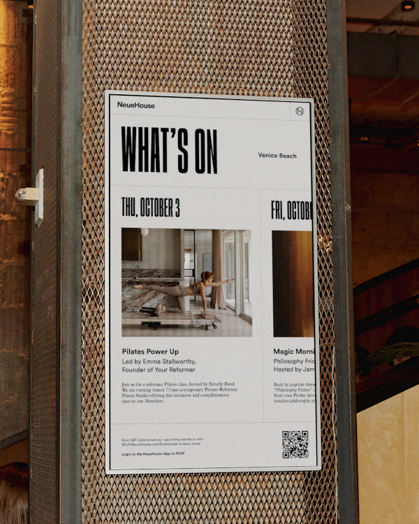 NeueHouse is the private work and social home for creative and professional progress. Through beautifully designed houses, thought-provoking cultural programming, and elevated hospitality, NeueHouse offers an unparalleled work experience that unlocks the potential of brands and innovators alike.